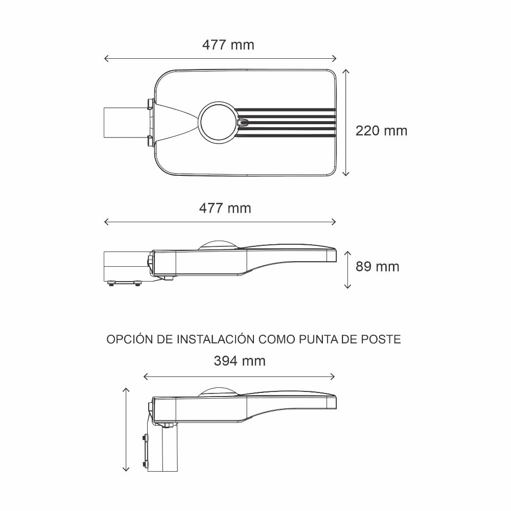 El luminario suburbano Citi 55 de Magg esta disenado para el alumbrado publico de alto rendimiento. Su potente chip LED de 55W proporciona una iluminacion intensa y uniforme, ideal para avenidas, areas residenciales y estacionamientos. Su robusta carcasa de aluminio inyectado asegura una larga vida util y resistencia a condiciones climaticas adversas (IP65).