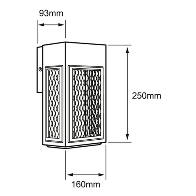 Lampara de pared arbotante LED exterior 8W, luz calida brillante (3000K), no atenuable, con LED integrado. Diseno compacto con pantalla metalica tipo malla, proteccion IP44, ideal para exteriores.