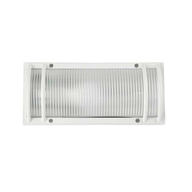 Lampara de pared Trezza H-1090/B de Tecnolite ofrece iluminacion eficiente para exteriores. Con potencia maxima de 20W y base E27, es compatible con focos LED. Su carcasa de aluminio blanco y proteccion IP45 la hacen resistente al polvo y agua. Ideal para jardines y fachadas.