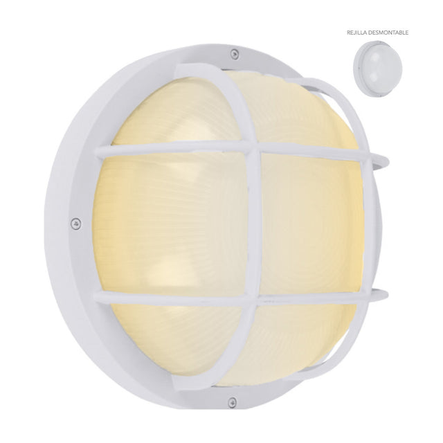 Con una potencia de 13W y un flujo luminoso de 860 lumenes, proporciona luz en tonalidades ajustables entre 3000K y 5000K. Su diseno compacto y acabado en color blanco la hacen ideal para montaje en pared, brindando una solucion estetica y funcional para iluminar areas al aire libre.
