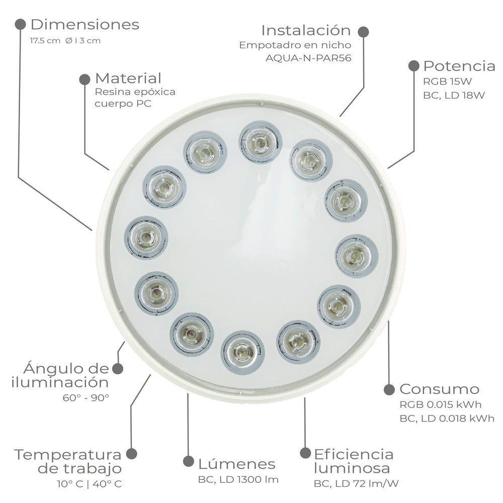 LUMINARIO PAR56 DE REMPLAZO RGB CONTROLABLE MCA TECNOLITE