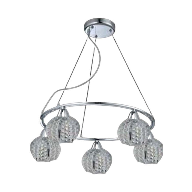 Lampara colgante LED moderna Stratto L45505. 5 luces de 3W en acabado cromado para iluminar con estilo salas y comedores. Diseño elegante, bajo consumo y facil instalacion. Perfecta para hogares contemporaneos.
