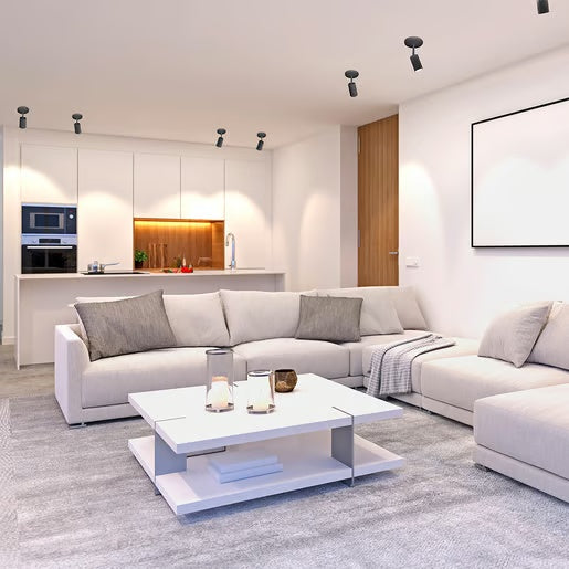Lampara spot LED de sobreponer (12YSNLED022MVCCN) de Tecnolite. Diseno dirigible para riel magnetico (compatible con serie YSN). Consume 12W y ofrece 900 lumenes. Permite ajustar la temperatura de color (CCT) y tiene un alto CRI 90. No atenuable.