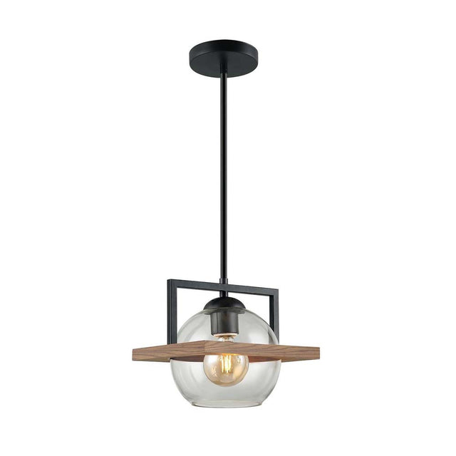 Luminaria colgante de 60 W color negro y madera Tabia TH1821/C Tecnolite.