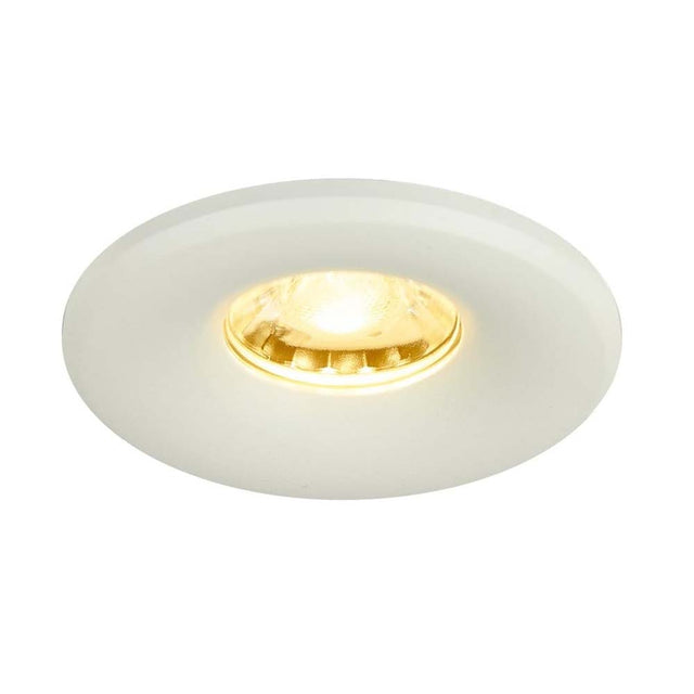 Downlight empotrable Tecnolite Circa de 8W con luz calida 3000K y flujo de 650 lm. Proteccion IP65 que permite uso en zonas con vapor y polvo. Corte de instalacion de 80 mm, ideal para sanitarios, cocinas y areas tecnicas.