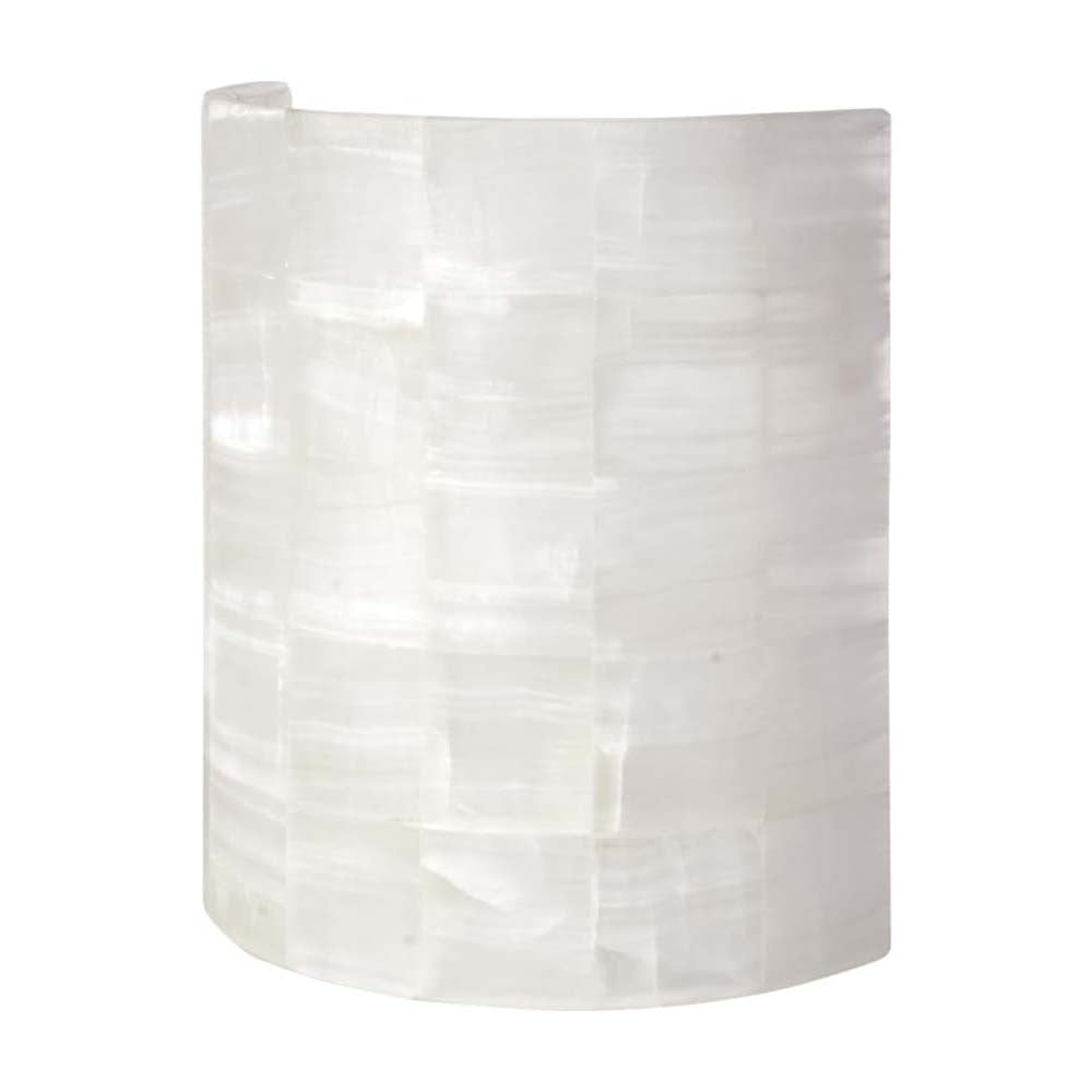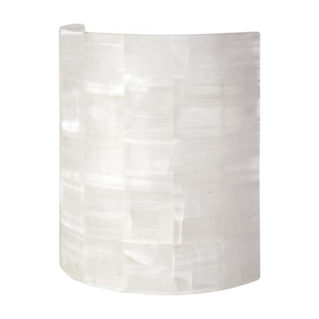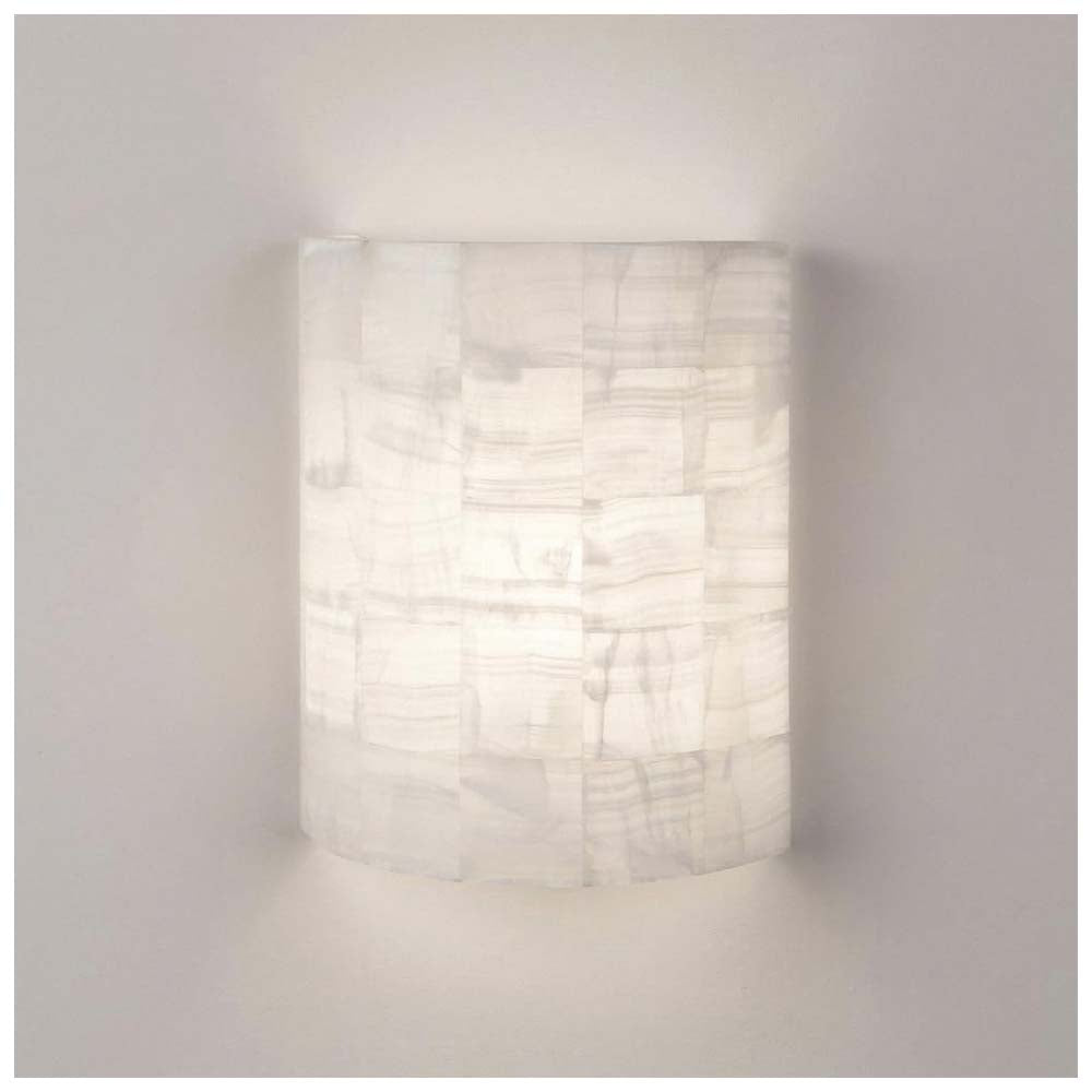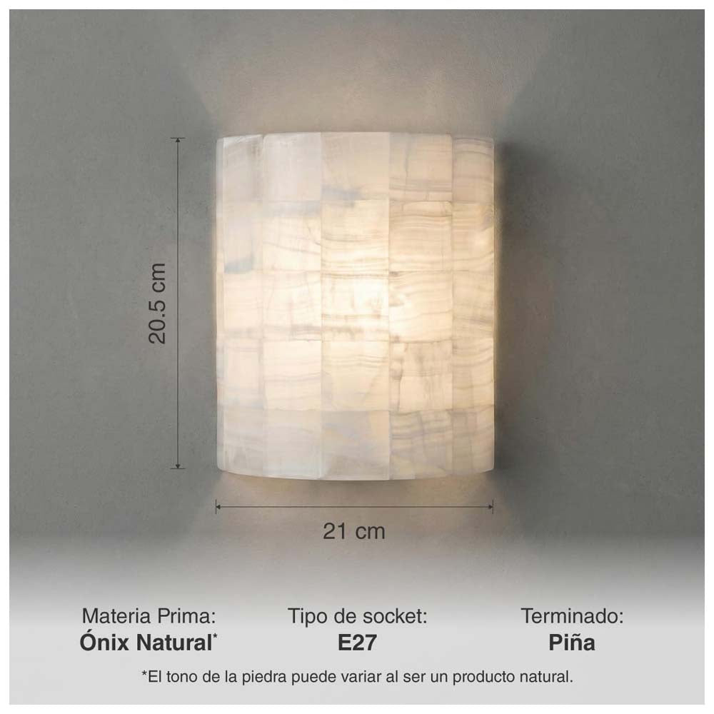 Luminario para muro Calux modelo OXC200PQ/B fabricado en onix natural con acabado blanco, disenado para iluminacion decorativa en interiores. Ideal para resaltar muros y crear ambientes calidos en espacios residenciales y comerciales, gracias a su difusion de luz a traves de piedra natural.