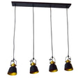 Lampara colgante de metal RAN II de Tecnolite, con 4 bases E27 para focos de hasta 240W. Acabado en negro mate con interior dorado. Ideal para iluminar y decorar espacios interiores con estilo moderno.