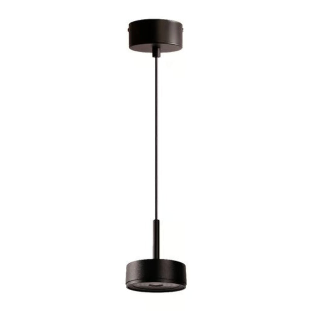 Lampara lineal colgante LED (15CTLLED177MV30N) de Tecnolite. Diseno delgado y minimalista en metal color negro. Consume 15W y ofrece 1000 lumenes de luz calida brillante (3000K) con un alto CRI 90. Altura ajustable hasta 1.5 metros. No atenuable.