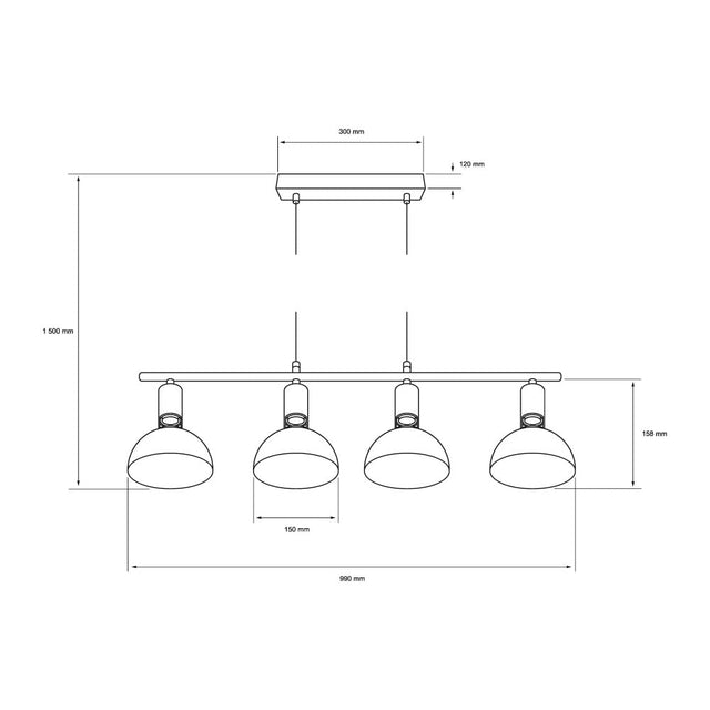 Luminario colgante (suspension) de interior con capacidad para 1 lampara de base E27 (foco no incluido). Compatible con voltajes de 100-240V. Diseno en color negro. Ideal para iluminacion decorativa y puntual sobre mesas. Marca TECNOLITE, de la linea de Productos Nuevos.