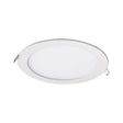 Luminario tipo downlight ultradelgado para empotrar en plafon con lampara LED tipo SMD y driver integrado; cuerpo circular fabricado en aluminio con acabado color niquel; luz Blanco Frio 6000 K
