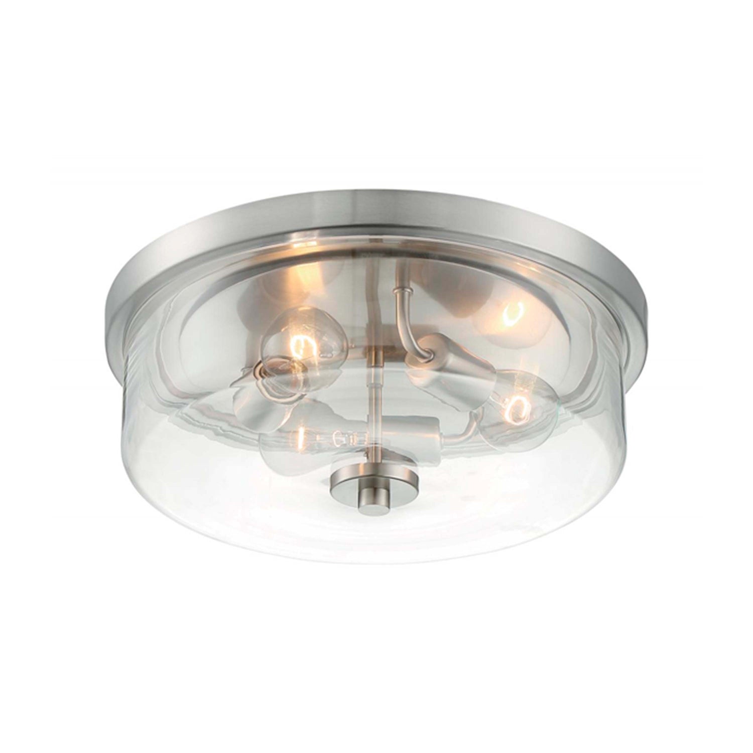 Plafon Sommerset SATCO modelo 60-7169 de 3 luces con vidrio claro y acabado niquel cepillado. Requiere lamparas E26, ideal para espacios interiores.