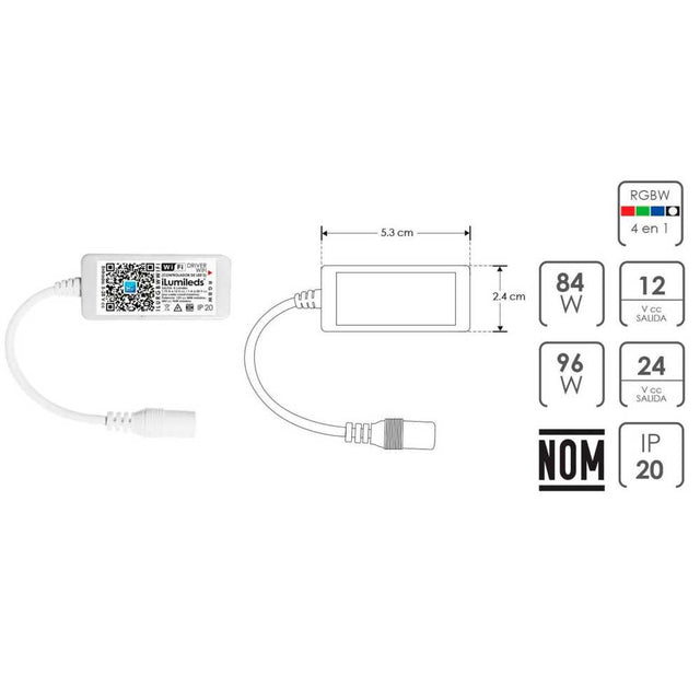 CONTROL INALAMBRICO VIA WIFI PARA TIRA DE LED RGB 84-96W 5-28V CC IP20 MCA ILUMILEDS