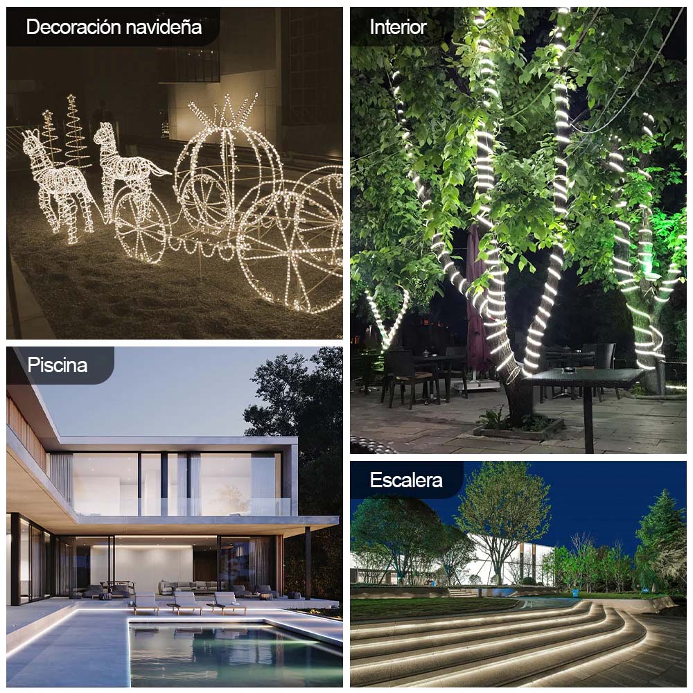 - Aplicaciones: Iluminacion decorativa en interiores y exteriores, adecuada para areas humedas.