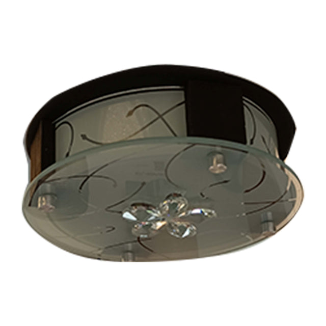 Este plafon redondo de Lamparas y Faroles Guzman, en un tamaño compacto, es ideal para habitaciones pequeñas, pasillos o vestidores. Su base en un calido color chocolate y su capacidad para dos focos (no incluidos) proporcionan una excelente iluminacion general con un diseño clasico y versatil.