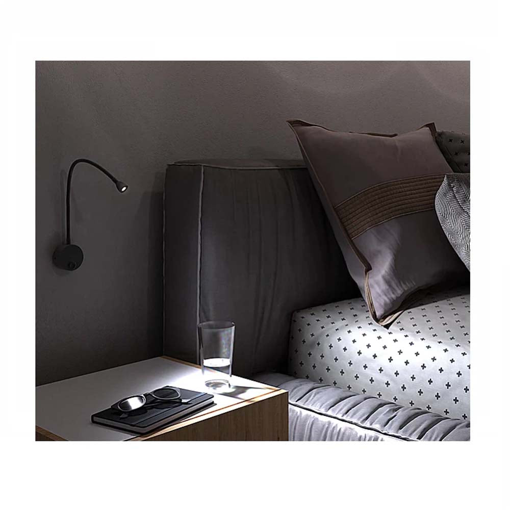 LUMINARIO LED SOBREPONER MURO SWAN II 1.7W/100-240V. APAGADOR Y BRAZO METALICO FLEXIBLE NEGRO 4000K LUZ NEUTRA ELECTROMAG