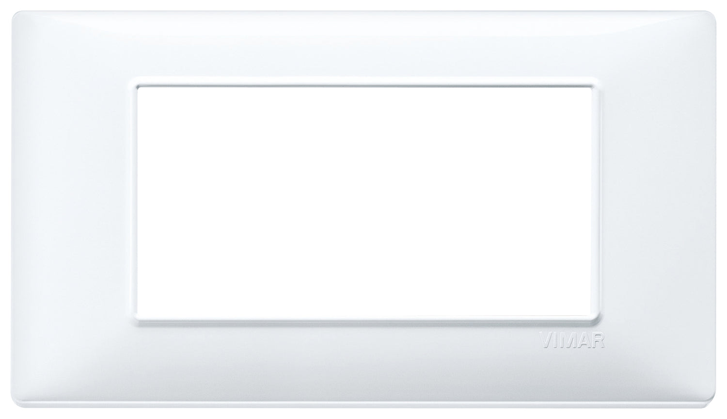 La placa de 4 modulos de la serie Plana de Vimar es ideal para areas que requieren una alta concentracion de servicios. Fabricada en tecnopolimero de alta calidad en un impecable color blanco, permite instalar hasta cuatro dispositivos con el diseno minimalista y elegante de Vimar.