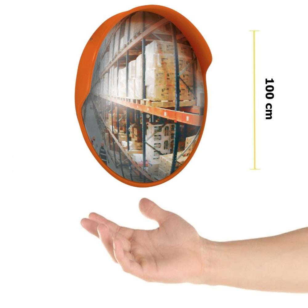 Espejo convexo de 100 cm ajustable, para interiores y exteriores, color naranja.
