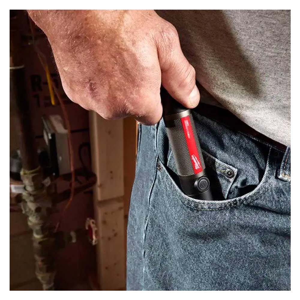 Esta linterna compacta de Milwaukee redefine la potencia en un tamaño de bolsillo. Proyecta un haz de luz de 800 lumenes a una distancia de hasta 150 metros. Su cuerpo de aluminio de grado aeronautico y su resistencia al agua (IP67) la hacen extremadamente duradera. La bateria REDLITHIUM USB se recarga internamente a traves de un puerto USB-C. Incluye bateria y cable.