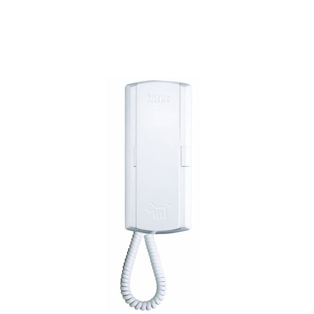 Este telefono de pared de Intec presenta un diseno con un practico colgador que mantiene el auricular en su sitio de forma segura. Es una unidad interior para sistemas de interfon (audio), permitiendo la comunicacion con el frente de calle y la apertura de la puerta.