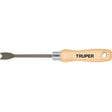 Deshierbador TRUPER para jardIn con cabeza de acero y mango de madera de fresno laqueado de 6 pulgadas (152.3 mm) de largo. La herramienta tiene una longitud total de 11 pulgadas (279.4 mm). Ideal para remover maleza, malezas y malas hierbas desde la raiz. El encabado esta reforzado con un casquillo metalico niquelado.