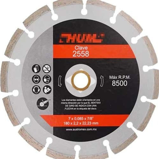 DISCO DE DIAMANTE SEGMENTADO HUM 7X0.087X7/8 180X2.3X22.2 MCA AUSTROMEX