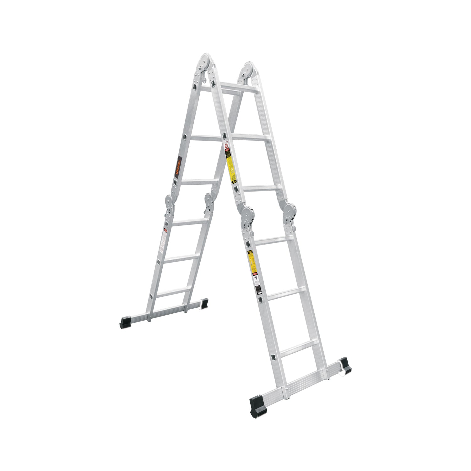 La escalera multiposicion de Truper es la solucion mas versatil para todo tipo de trabajos en altura. Con 12 peldanos y una capacidad de carga tipo I (113 kg), puede configurarse en multiples posiciones: recta, de tijera, andamio, y mas. Fabricada en aluminio resistente, cuenta con seguros articulados y tacones antiderrapantes para maxima seguridad.
