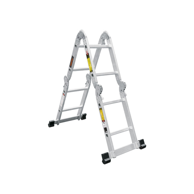La escalera multiposicion de Truper es la solucion mas versatil para todo tipo de trabajos en altura. Con 8 peldanos y una capacidad de carga tipo I (113 kg), puede configurarse en multiples posiciones: recta, de tijera, andamio, y mas. Fabricada en aluminio resistente, cuenta con seguros articulados y tacones antiderrapantes para maxima seguridad.