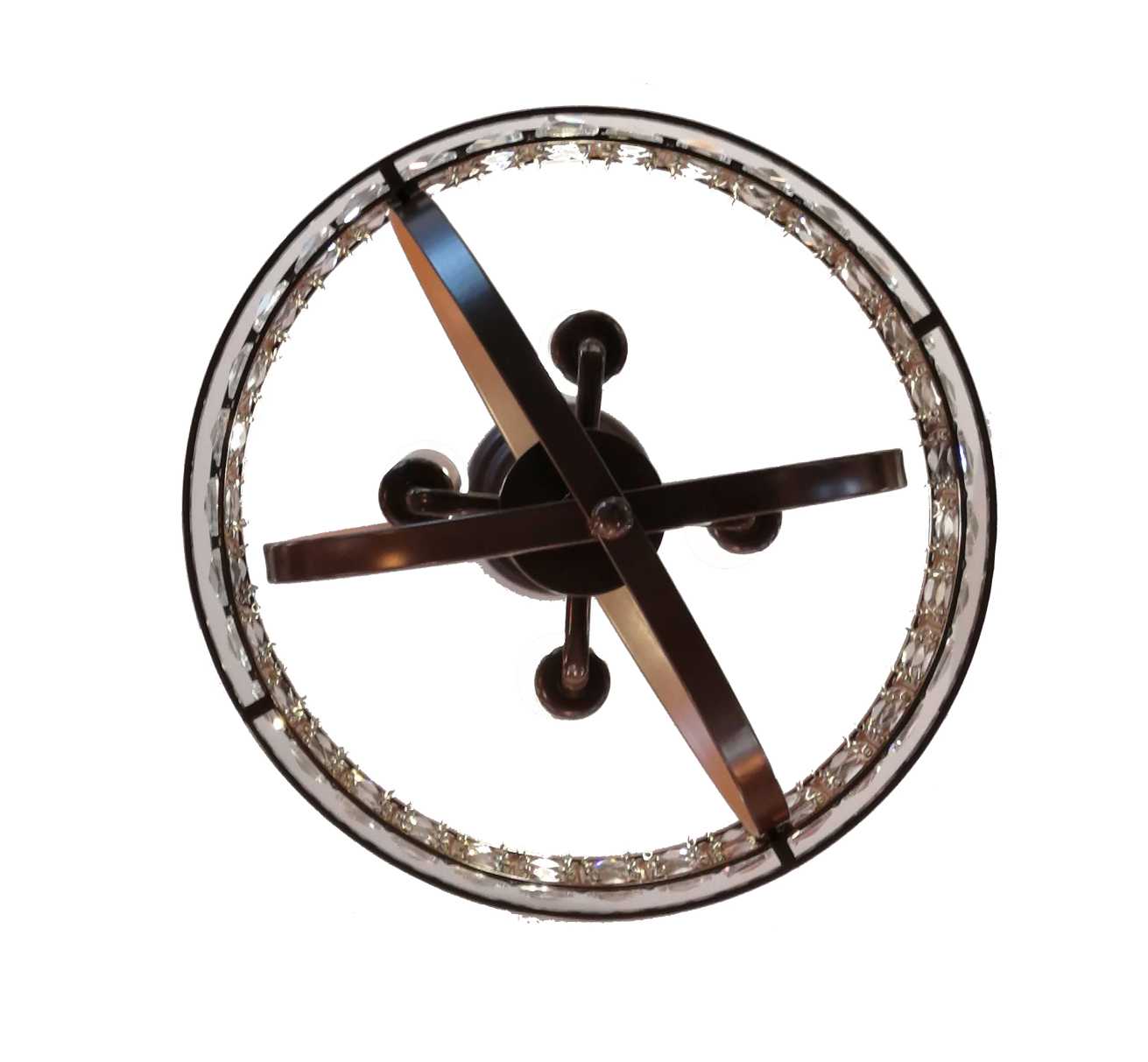 Luminario colgante o candil de la marca Class. Su diseno clasico de 4 brazos en acabado cafe es ideal para comedores o salas. Utiliza 4 focos de base E14 (incluye focos de 4W). Este producto se encuentra descontinuado, la informacion se proporciona como referencia.