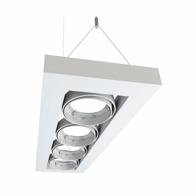 El luminario L5823-100 de Electromag (Magg) es una base de suspension de la linea Alpha IV L LED en color blanco. Esta disenado para alojar 4 lamparas tipo AR111 LED (no incluidas). Cuenta con sistema cardanico dirigible (30 grados), ideal para iluminacion de acento en comercios y boutiques.