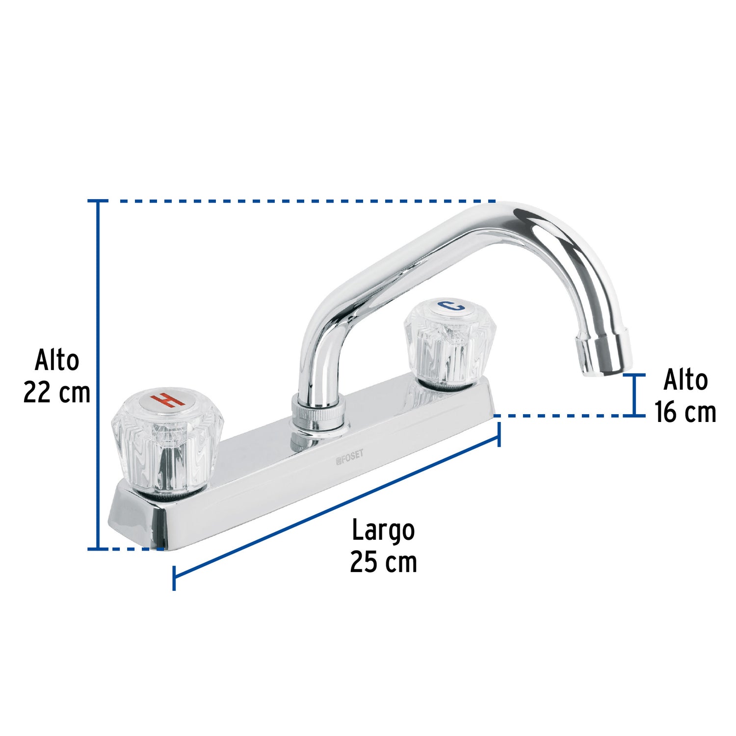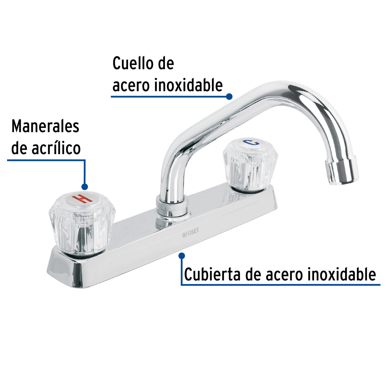 Mezcladora para Fregadero 8 Pulgadas Cuello Corto Manerales de Acrilico Foset