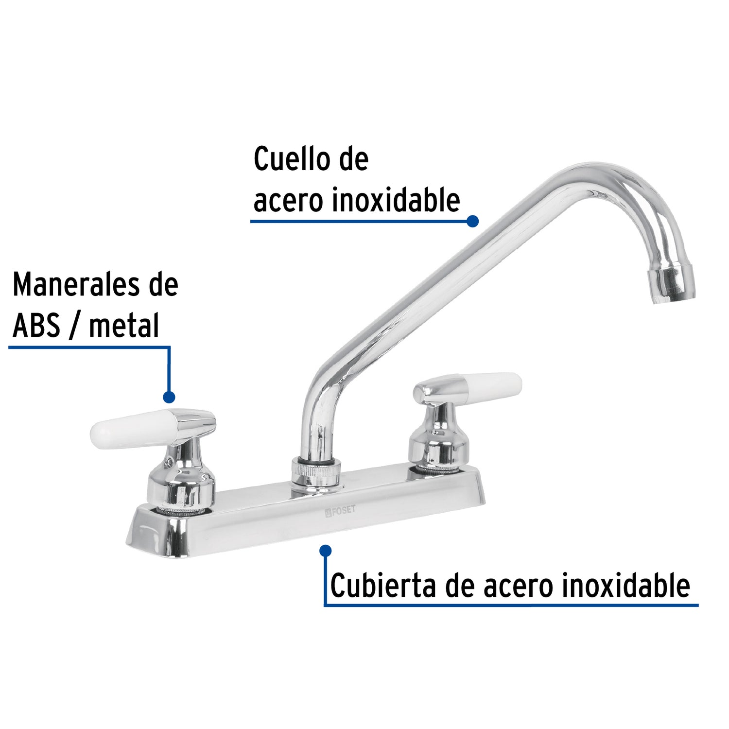 Mezcladora para Fregadero 8 Pulgadas Cuello Largo Manerales Cono Foset