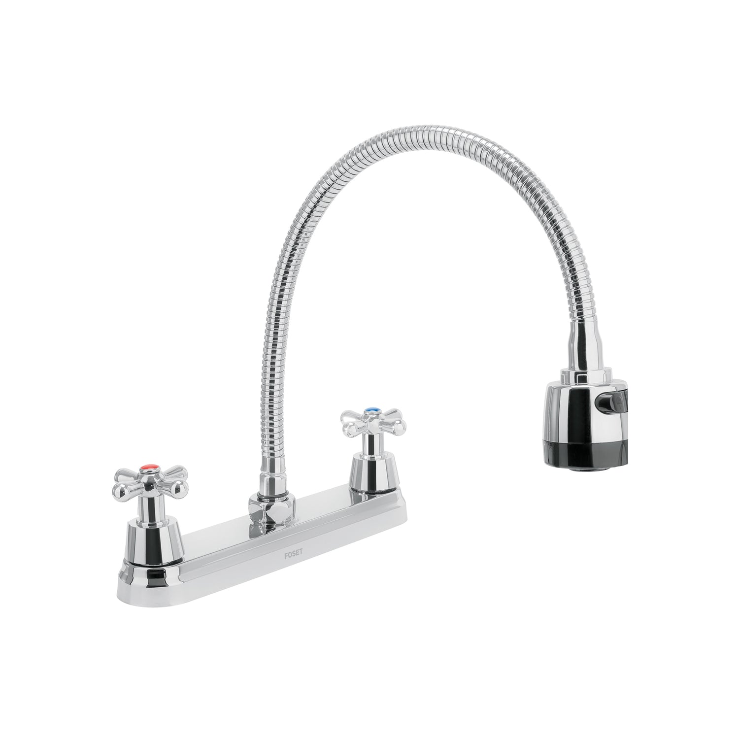 MEZCLADORA INOXIDABLE 8" PARA FREGADERO FLEXIBLE LLAVE TIPO CRUCETA FOSET AQUA
