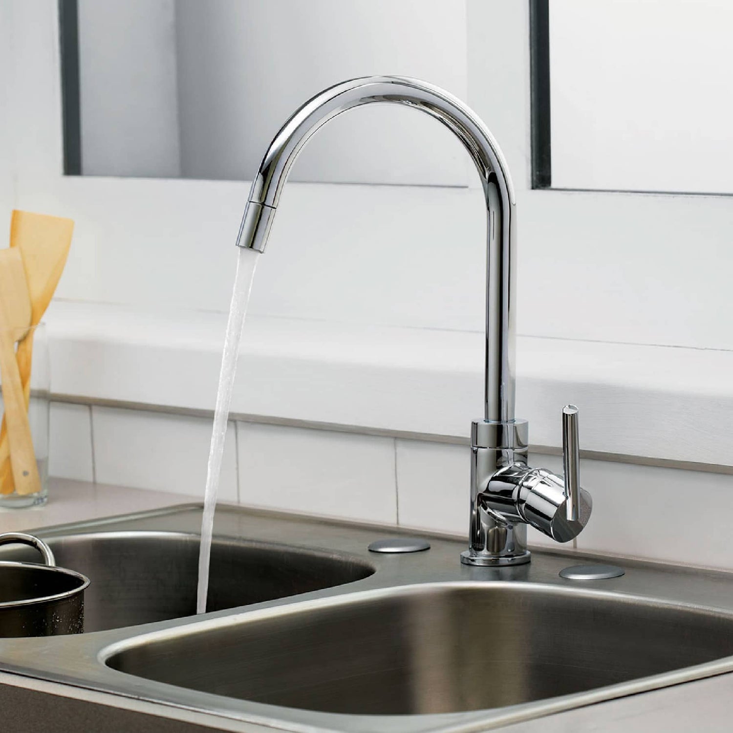 Moderna mezcladora para fregadero de la linea Element de Foset. Su principal caracteristica es la manguera extraible con cabezal de doble funcion (chorro y regadera), que facilita la limpieza de la tarja y el lavado de alimentos. Su elegante acabado satinado y su maneral tipo palanca la hacen el centro de atencion de cualquier cocina contemporanea.