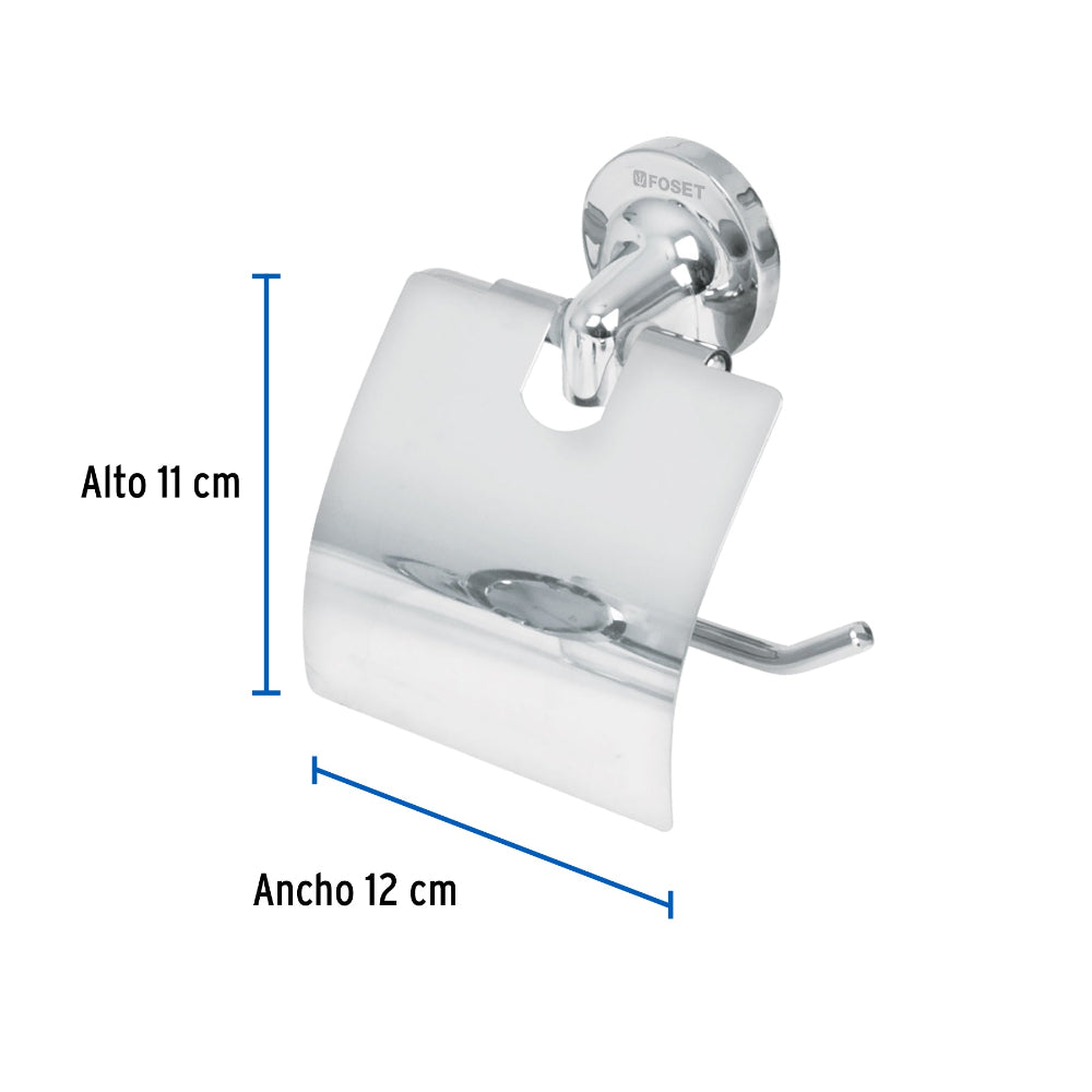 El portarrollo de la linea Foset Aqua anade un toque de funcionalidad y estilo a tu sanitario. Su diseno con cubierta protege el papel higienico de salpicaduras, manteniendolo seco y limpio. Fabricado en plastico con un brillante acabado en cromo, es un accesorio duradero, economico y facil de instalar.
