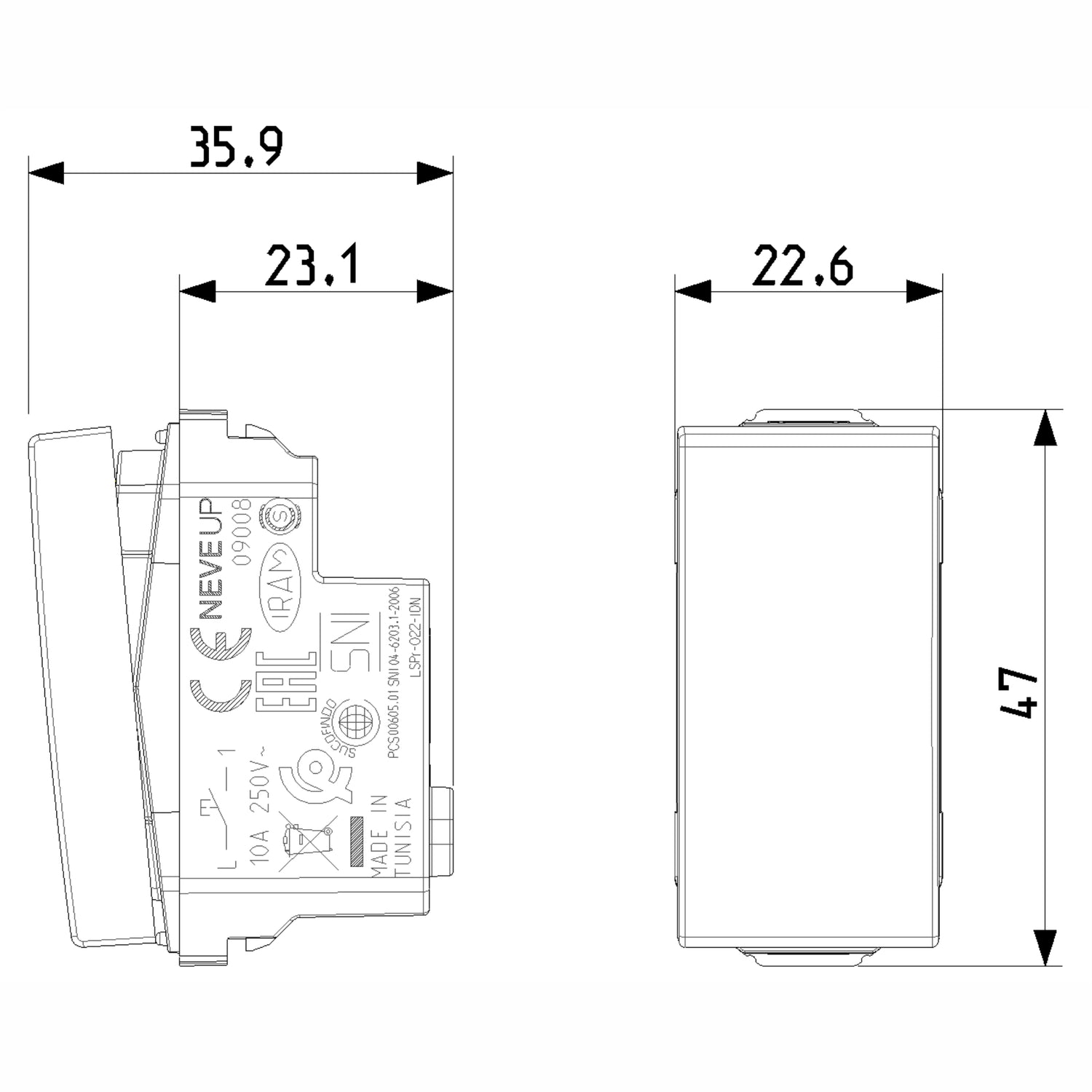 Este modulo pulsador de la serie Neve de Vimar, con su diseño minimalista en color blanco, es perfecto para accionar timbres o zumbadores. Ocupa un solo espacio de modulo, permitiendo crear combinaciones limpias y funcionales con la alta calidad del diseño italiano.