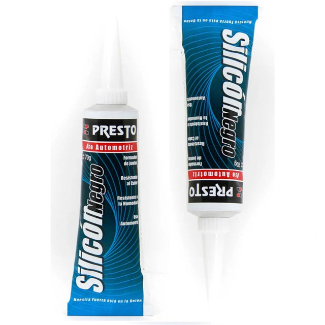 El sellador de silicon de alta temperatura de Presto esta formulado para crear juntas y sellos que resisten condiciones extremas. Es ideal para aplicaciones automotrices e industriales, como juntas de tapas de punterias, carter, bombas de agua y termostatos. Soporta temperaturas de hasta 260°C en operacion continua, manteniendo su flexibilidad y adherencia.