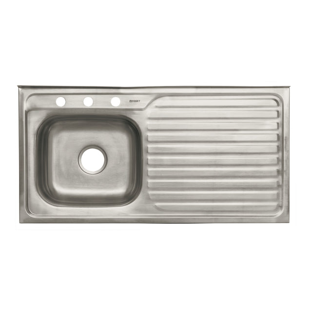 Tarja o fregadero para sobreponer directamente sobre el gabinete de cocina. Con medidas de 100 x 50 cm, cuenta con una tina del lado izquierdo y un amplio escurridero del lado derecho. Fabricada en acero inoxidable, su instalacion es sencilla y ofrece una superficie de trabajo resistente y facil de limpiar.