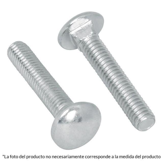 Tornillo tipo coche con cabeza redonda y cuello cuadrado, galvanizado para mayor durabilidad. Adecuado para uniones de elementos de madera y metal. Marca TRUPER FIERO.