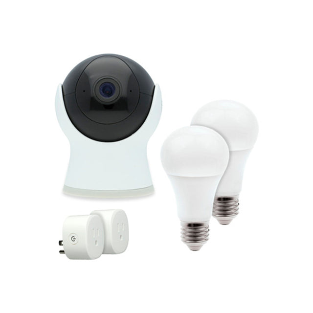 Inicia tu casa inteligente con el kit basico de Tecnolite Connect. Incluye una camara de seguridad, dos focos LED inteligentes con luz RGB y blanca, y dos enchufes inteligentes. Controla todo desde la app movil o con tu asistente de voz favorito (compatible con Alexa y Google Assistant). Facil de instalar y configurar.