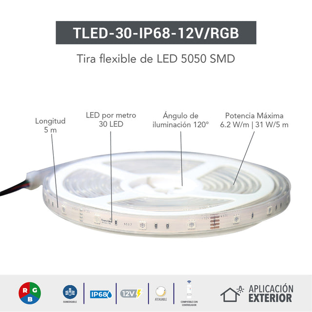 KIT DE 2 TIRAS FLEXIBLES DE LED 5050 12V RGB DE 5M TECNOLITE