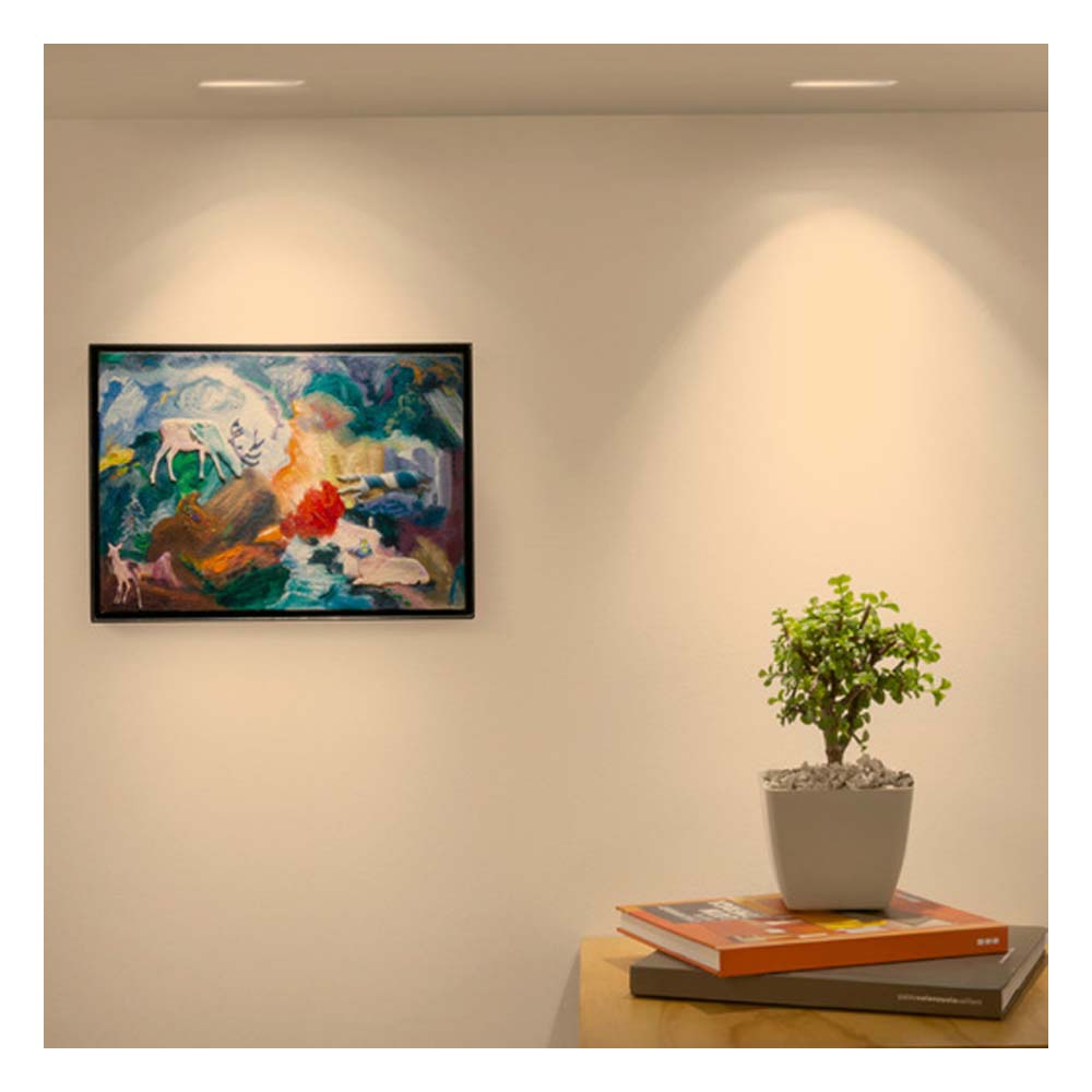 La lampara LED empotrable Cervantes I de Tecnolite ofrece iluminacion suave y discreta con 1W de potencia y luz calida de 3000K. Su diseno sin marco y fabricacion en yeso blanco permite integrarse perfectamente al techo, brindando una apariencia minimalista y moderna. Ideal para espacios interiores que requieren acento luminoso sin deslumbramiento.