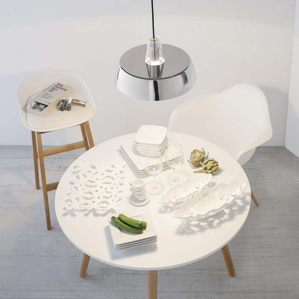 Lampara colgante La Canee CTL-320/CR de 20 W, acabado cromado, base E27, voltaje 100-240 V. Ideal para interiores modernos como comedores, cocinas y oficinas. Diseño elegante y versátil que combina con diversos estilos decorativos.