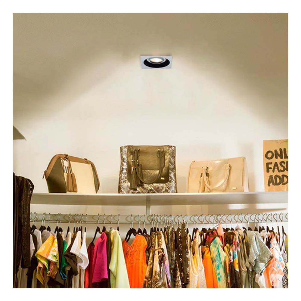 La lampara empotrable Alasia II de Tecnolite ofrece 6W de potencia y un diseno cuadrado en color blanco. Ideal para interiores, cuenta con base GX5.3 y es compatible con focos LED. Su estructura de aluminio garantiza durabilidad y estilo moderno.