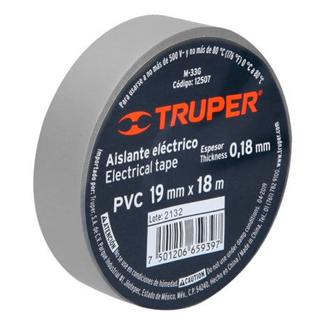CINTA DE AISLAR GRIS 18MX19MM. M-33G 12507 TRUPER *** OFRECER ST17-075-66GY ***