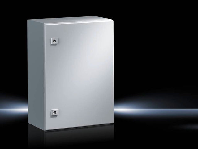Armario metalico compacto de 380 x 600 x 350 mm (alto x ancho x fondo). Color gris RAL7035. Incluye placa de montaje. Alto grado de proteccion IP66 y certificacion NEMA 4 (apto para uso en exteriores e interiores con polvo, agua y hielo). Esencial para albergar equipos y controles electricos/electronicos. Marca RITTAL. Articulo de remate. ***HAE 2023***.