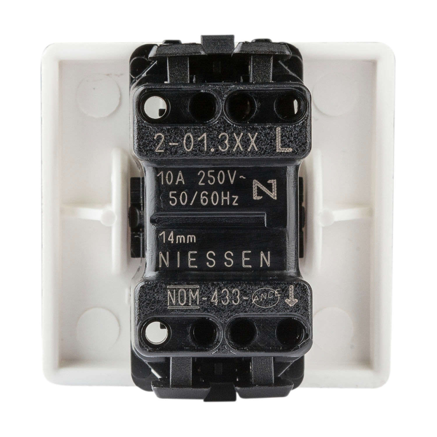 Apagador Sencillo sin visor de 2 módulos Tipo de montaje,Empotrado en muro Largo,44mm Ancho,35mm Altura,43mm Materiales,Plástico Peso,0.02kg