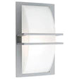 Arbotante sencillo para iluminacion de pared exterior. Su diseño es ideal para jardines o fachadas. Construido en aluminio y cristal. Este articulo se vende con existencias limitadas en la Nave 7.