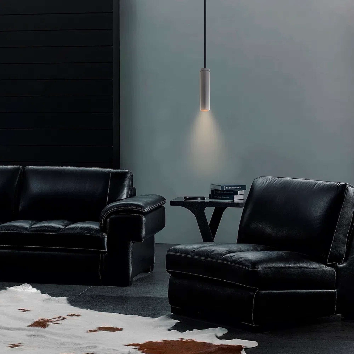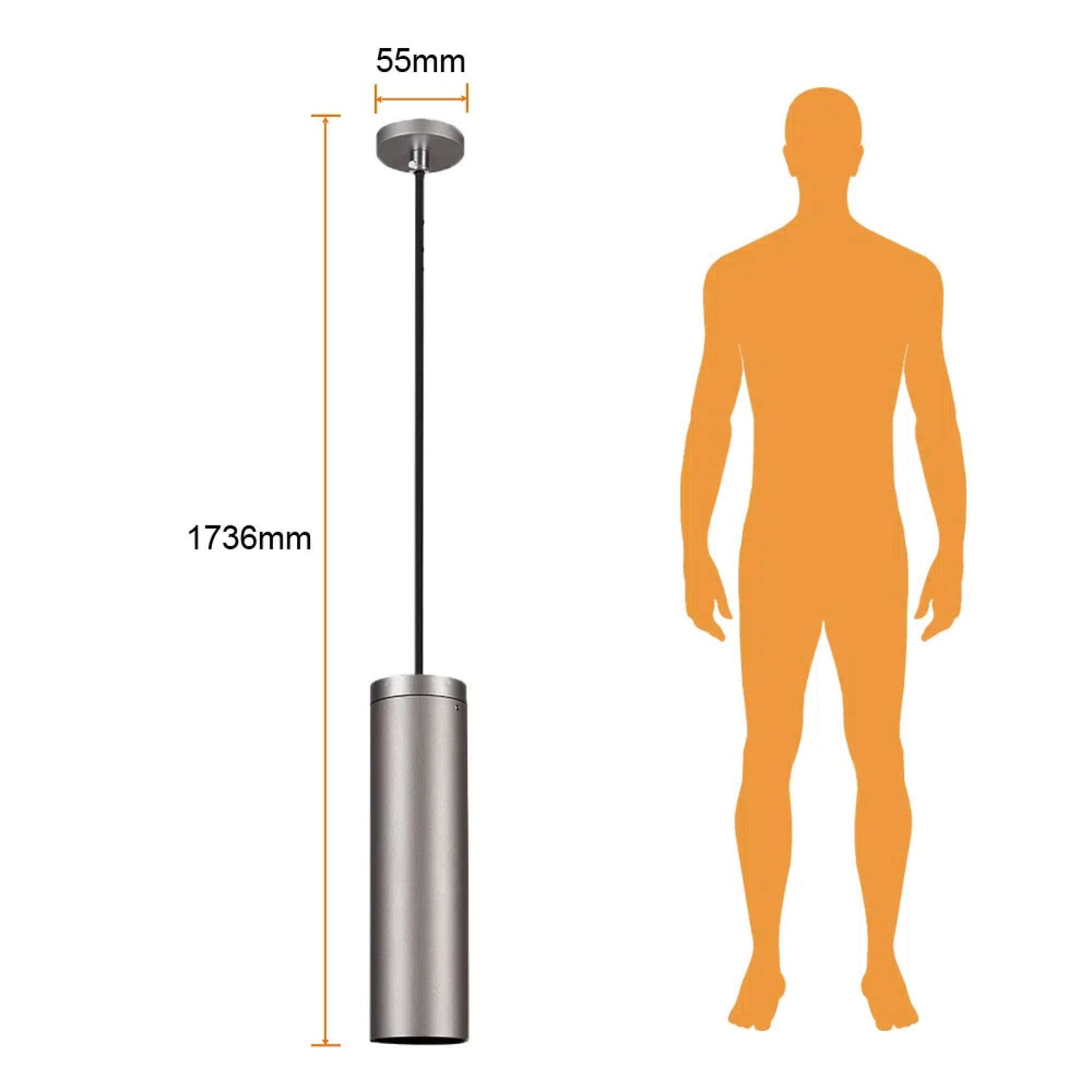 Colgante metalico **Azha I** con **LED integrado de 7W** y luz suave **calida de 3000K**. Ideal para iluminacion decorativa y puntual en interiores modernos. Presenta una altura considerable de **1.73 metros** (estimado) y un acabado **gris**. Opera a 100-240V. Este articulo es un **producto de exhibicion** y se conserva como referencia.