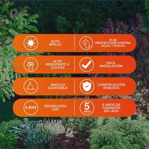 El reflector Zibal I de Tecnolite es una solucion de iluminacion exterior compacta y eficiente. Con solo 10W de consumo, genera 800 lumenes de luz fria (6500K), ideal para iluminar patios, jardines o pequenas fachadas. Su carcasa es resistente a la intemperie y opera en un amplio rango de voltaje de 100 a 277V. Nota: Este articulo se conserva como referencia, puede ser una pieza de exhibicion o unica hasta agotar existencias.