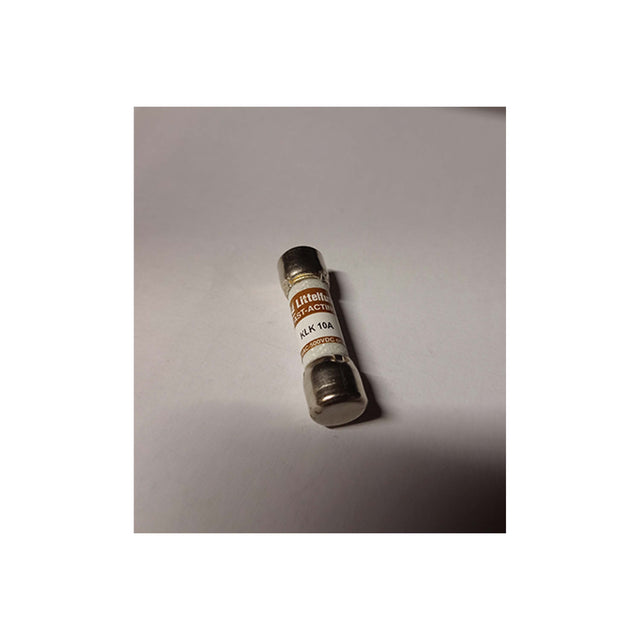 Fusible suplementario de la serie KLK de Littelfuse. Este fusible de accion rapida tiene una capacidad de 10 Amperios y 600V en corriente alterna. Sus dimensiones son 13/32 x 1-1/2 (10x38mm). Es ideal para la proteccion de circuitos de control, transformadores, balastros y otros equipos que no soporten sobrecorrientes.